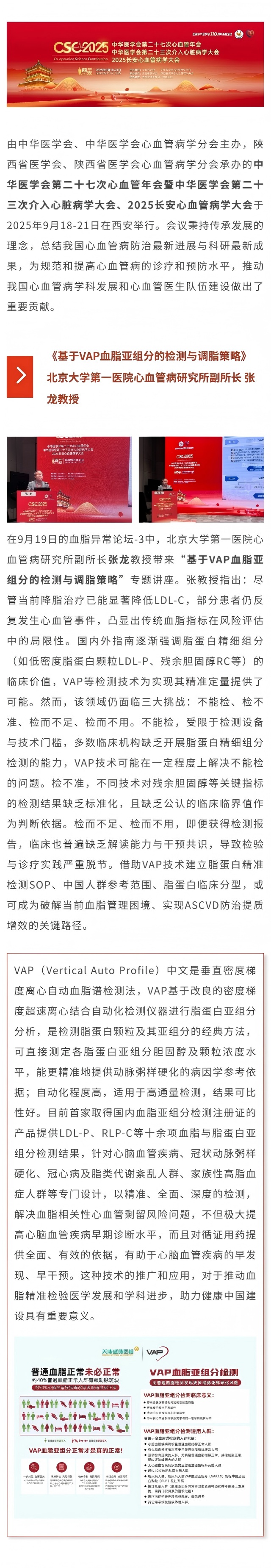 北京大学第一医院心血管病研究所副所长张龙教授在中华医学会第二十七次心血管年会作《基于VAP血脂亚组分的检测与调脂策略》学术报告